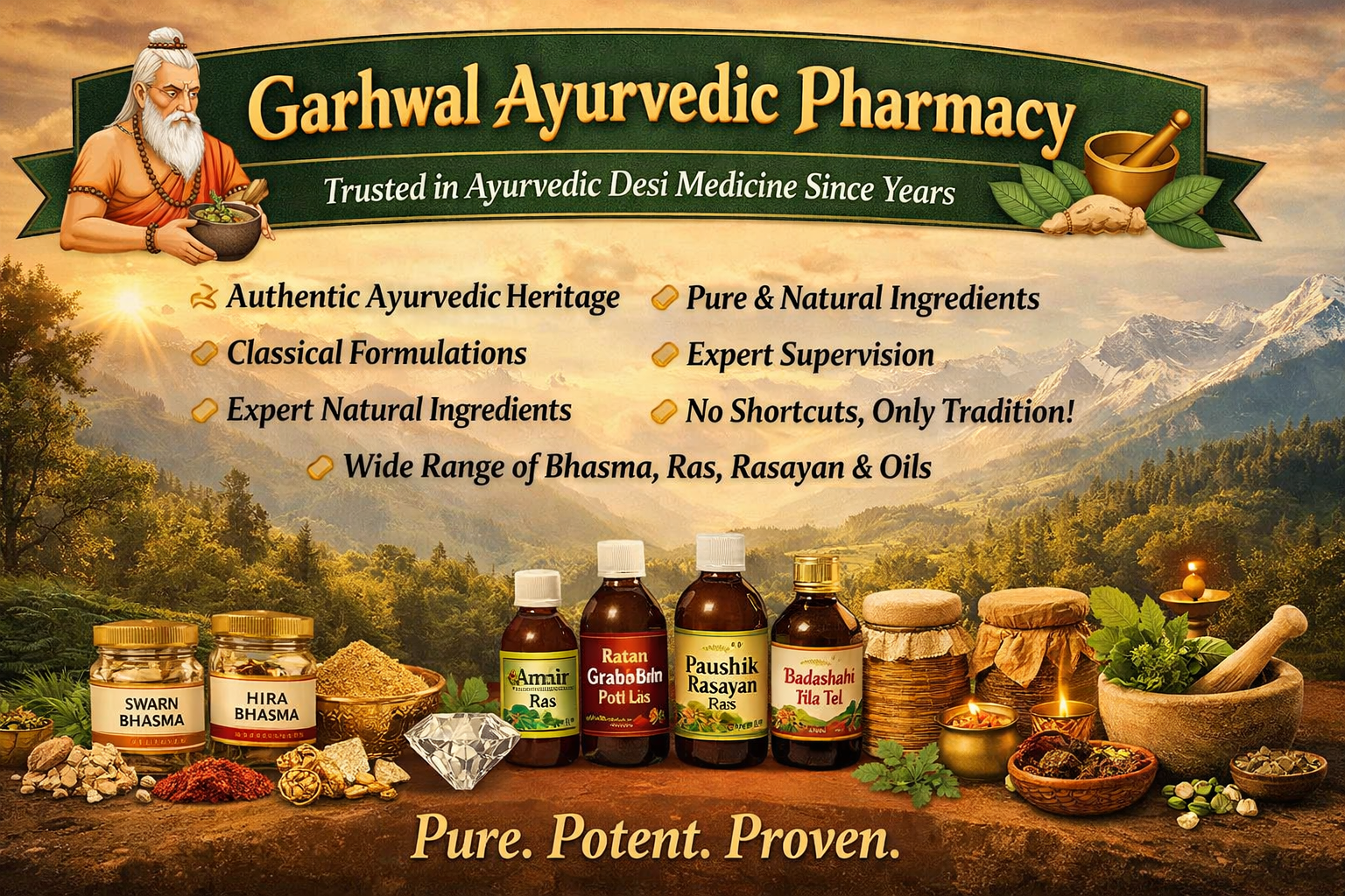 Garhwal Ayurvedic Pharmacy is a trusted Ayurvedic Desi medicine manufacturer with years of experience in preparing authentic Bhasma, Ras, Rasayan, Buti formulations, and Ayurvedic Oils. Rooted in classical Ayurvedic principles, our medicines are crafted using traditional methods, purified ingredients, and time-tested processes to ensure purity, potency, and effectiveness. We believe in preserving the original essence of Ayurveda without shortcuts or compromise. Our products are widely used by Ayurvedic practitioners and valued by customers who trust natural healing. With a deep respect for ancient wisdom and a commitment to quality, we continue to support health, strength, and overall well-being through genuine Ayurvedic formulations.